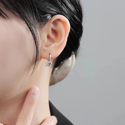 E廠【YC10171E】S925純銀甜美蝴蝶耳環女時尚精緻百搭耳圈設計高級感耳飾 24.04-4