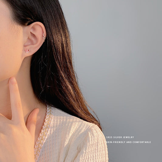 E廠【YC10148E】S925純銀時尚蝴蝶耳環女設計感夏季新款紅色顯白款耳飾品 24.04-3