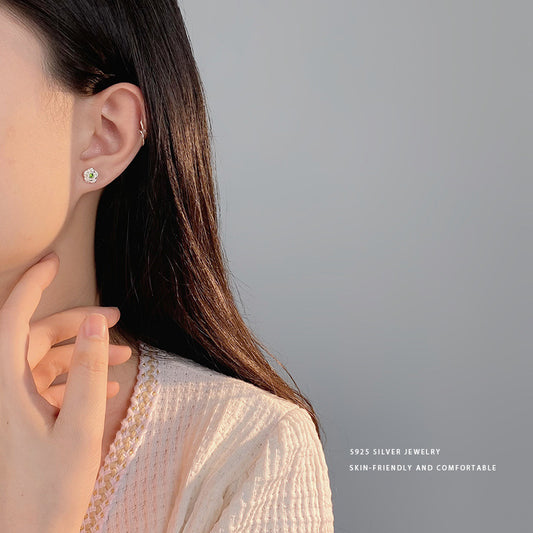E廠【YC10145E】S925純銀小清新綠鋯花朵耳環女夏季甜美新款仙女風耳飾品 24.05-2