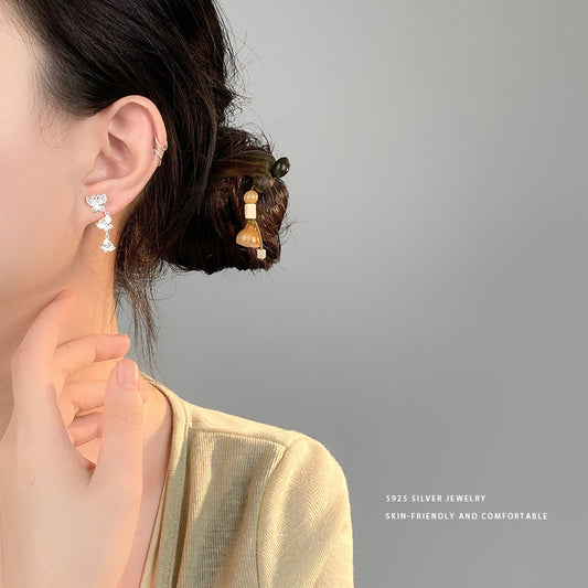 E廠【YC10135E】S925純銀雅三隻蝴蝶耳環女國風氣質耳環旗袍配件耳環飾品 24.04-4