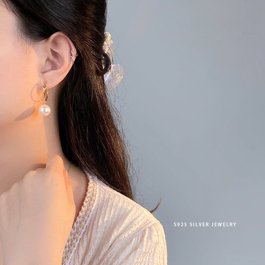 E廠【YC10160E】S925純銀法式珍珠耳環女輕奢高級感氣質大氣耳環2024新款 24.06-1