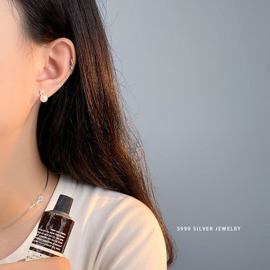 E廠【YC10218E】S925純銀甜蝴蝶結珍珠耳扣女時尚百搭ins設計感耳圈 24.05-1