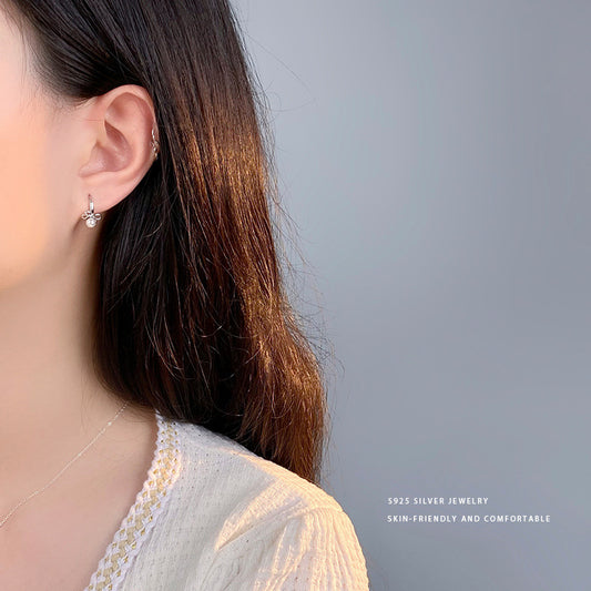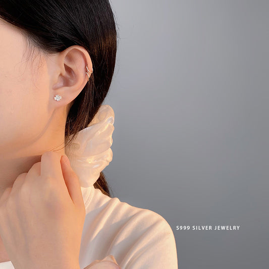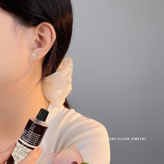 E廠【YC10207E】S999足銀甜美花朵四葉花耳環女小眾設計感個性百搭耳環 24.06-2