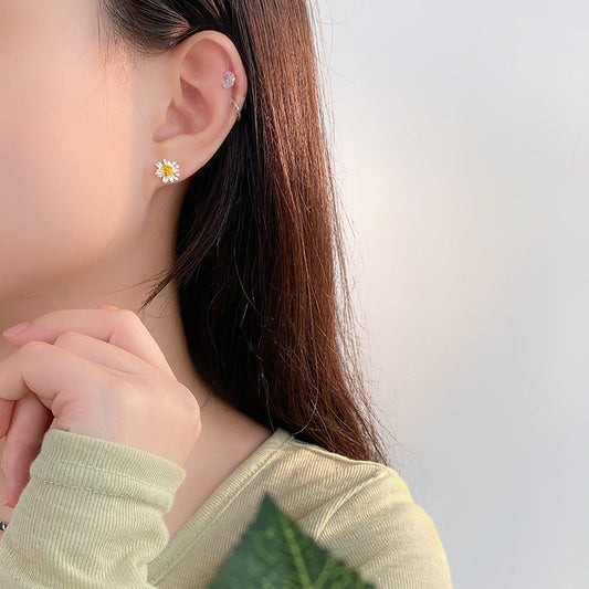 E廠【YC10228E】S999足銀小雛菊耳環花朵小清新耳環小巧日系甜美可愛耳釘 24.06-2