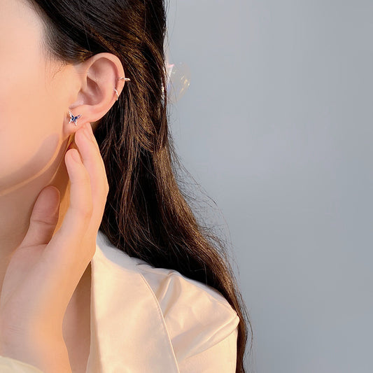 E廠【YC10257E】S999足銀小巧海藍寶螺絲耳環女清新甜美高級感簡約耳飾 24.08-4