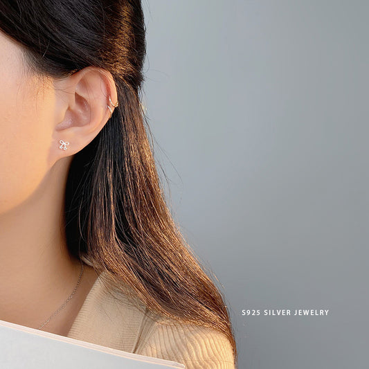 E廠【YC10251E】S925純銀小眾蝴蝶結鋯石耳環女氣質獨特耳環2024年新款ins風 24.06-1