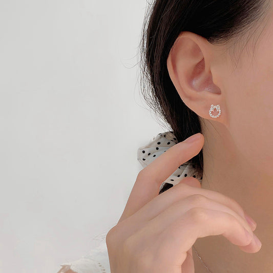 E廠【YC10243E】S925純銀小眾X字母愛心珍珠耳環女輕奢精巧設計感氣質耳飾品 24.06-1