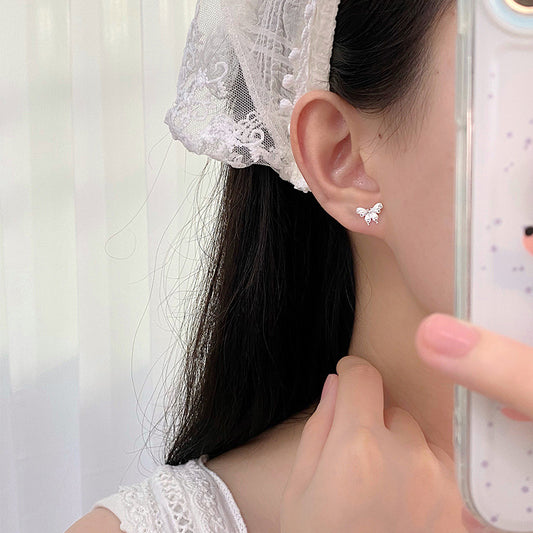 E廠【YC10361E】S999足銀甜美蝴蝶耳環女百搭簡約小眾氣質輕奢高級耳飾 24.08-4