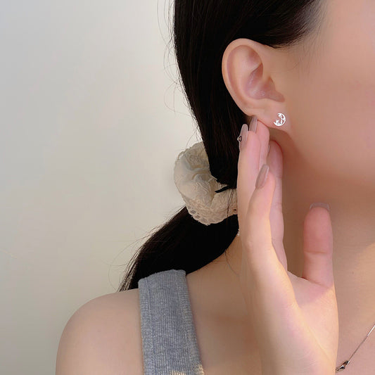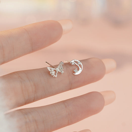 E廠【YC10352E】S999足銀蝴蝶月亮耳環少女感百搭韓風清新甜美公主耳飾 25.04-1