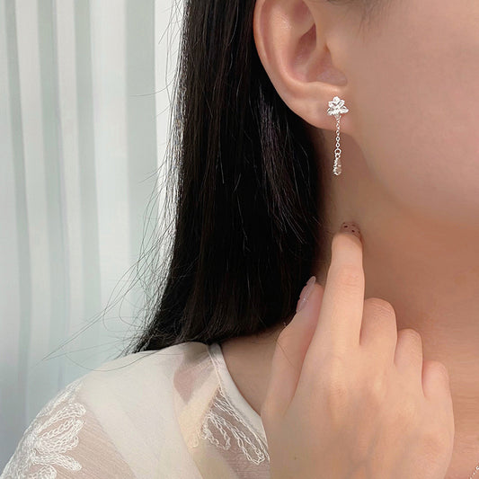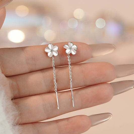 E廠【YC10337E】S999足銀花朵喜字流蘇耳環清新甜美氣質優雅百搭小眾耳飾 24.08-1