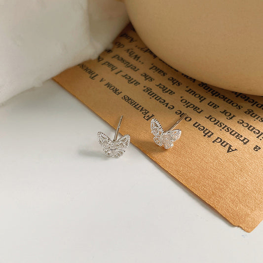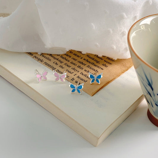 E廠【YC10339E】S999足銀鏤空蝴蝶耳環小清新甜美風可愛氣質養耳洞耳飾 24.07-3