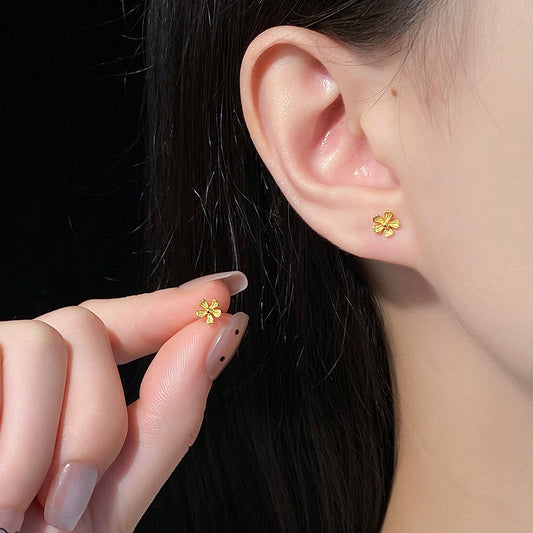 E廠【YC10344E】S999足銀花朵螺絲耳環可愛清新森系肌理感小花精緻耳飾女 25.01-3