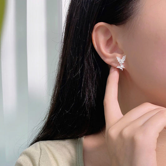 E廠【YC10348E】S999足銀個性蝴蝶耳環女新款百搭氣質日常通勤輕奢耳飾 24.07-3