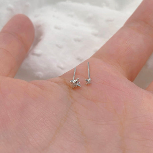 E廠【YC10340E】S999足銀不對稱四芒星耳環獨特設計感高級極簡養耳洞耳飾 24.07-3