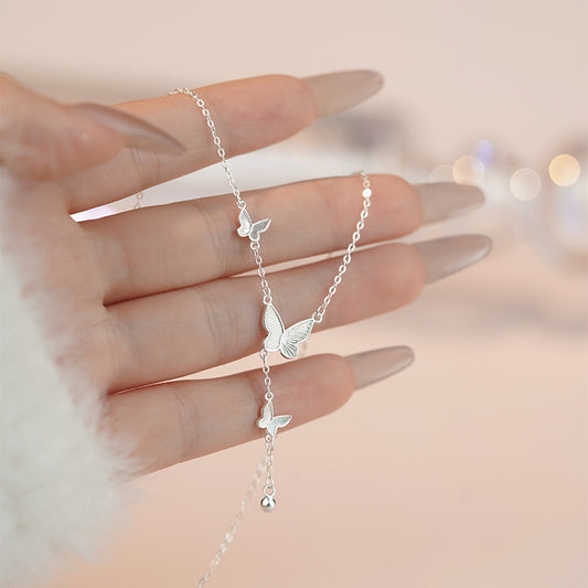 E廠【YC1547N】S999足銀蝴蝶圓珠流蘇項鍊爆款清新設計女韓風文藝鎖骨鏈 25.05-5