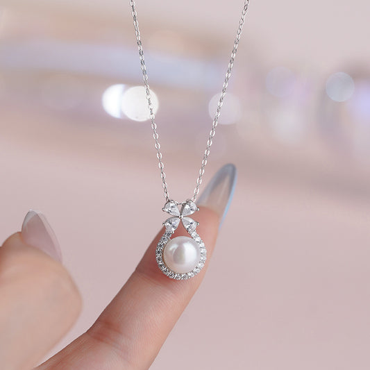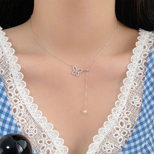 E廠【YC1673N】S999純銀小清新甜美鏤空蝴蝶珍珠項鍊女爆款新款氣質項鍊 24.06-2