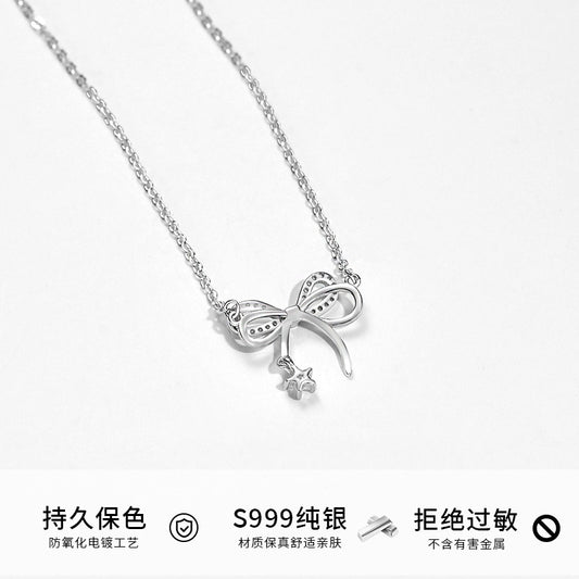 E廠【YC1658N】S999足銀甜美蝴蝶結星星項鍊女百搭鎖骨鏈 24.04-3
