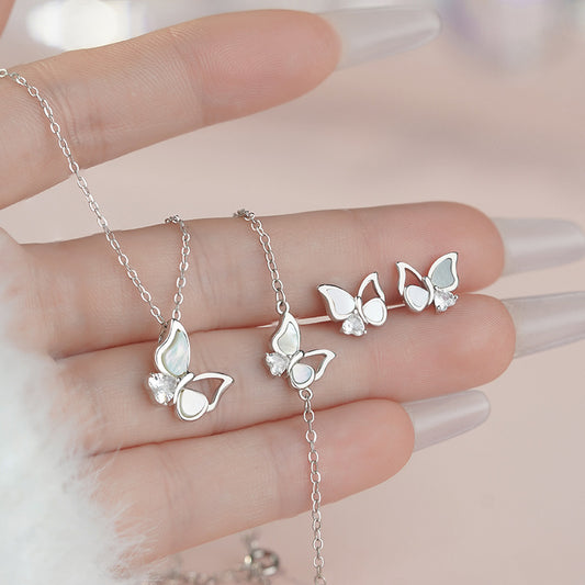 E廠【YC1425N】原創S925純銀心瀾蝶舞系列套裝清新文藝甜美溫柔鎖骨鏈 25.04-3