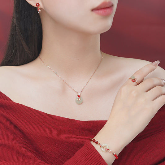 E廠【YC1545N】S925純銀原創和田玉鴻運錦鯉項鍊女新年個性小眾文藝國風套裝 24.10-4