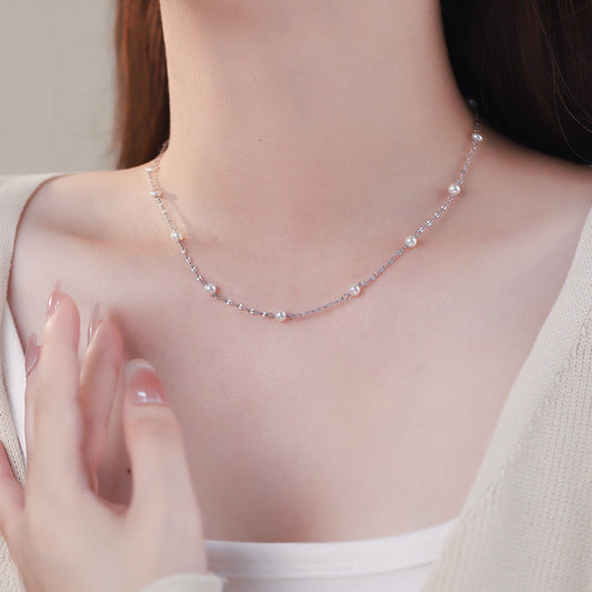 E廠【YC1646N】S925純銀輕奢珍珠項鍊女高級感設計感優雅氣質簡約鎖骨鏈 24.11-3