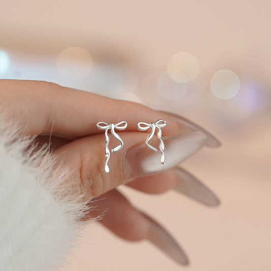 E廠【YC2535E】S999足銀絲帶蝴蝶結螺絲耳環清新甜美氣質可愛公主耳飾 25.01-2