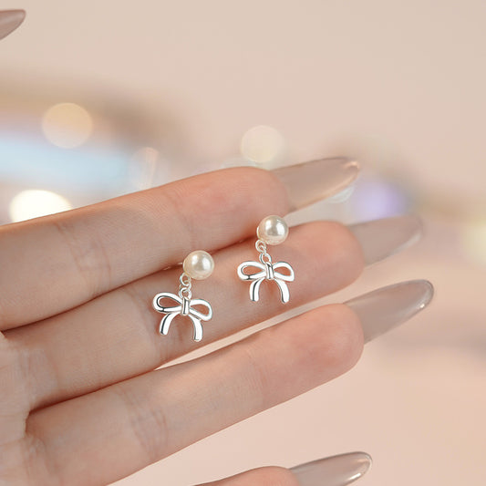 E廠【YC2577E】S925純銀甜蝴蝶結珍珠耳環女小眾法式少女感後掛式耳環 25.05-5