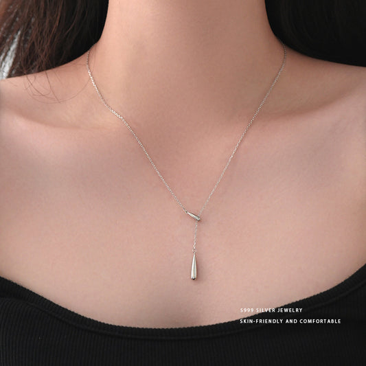 E廠【YC2558N】S999足銀水滴項鍊輕奢簡約百搭可移動調整款鎖骨鏈小眾設計感 24.01-1