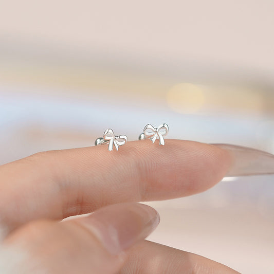 E廠【YC2667E】S999足銀精緻蝴蝶結螺絲耳環女輕奢百搭小眾高級設計耳飾 25.05-4