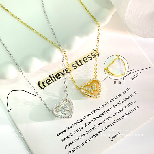 E廠【YC2729N】S925純銀甜美蝴蝶貝殼愛心項鍊女輕奢ins風少女感鎖骨鏈 24.02-3