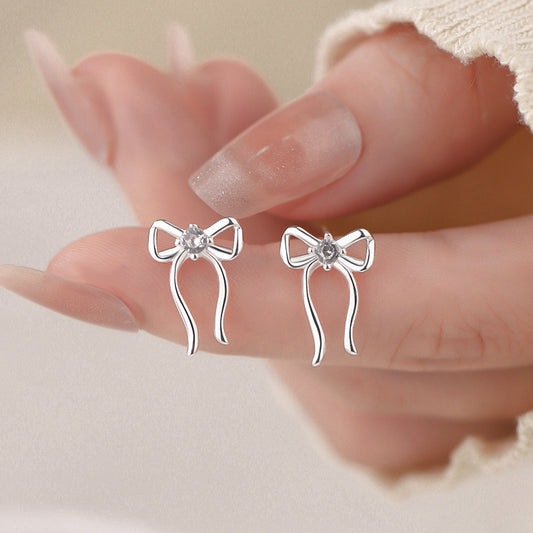 E廠【YC2757E】S925純銀簡約鋯石蝴蝶結耳環女甜美百搭少女感養耳洞耳環 24.11-3