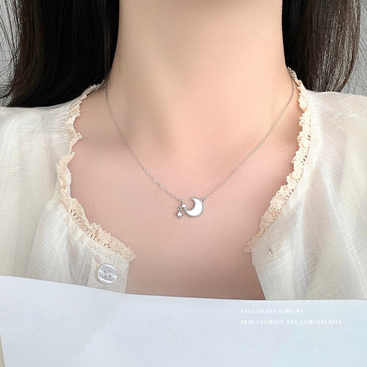 E廠【YC2704N】S925純銀小眾星月項鍊女輕奢高級感溫柔氣質款鎖骨鍊頸飾 24.01-4