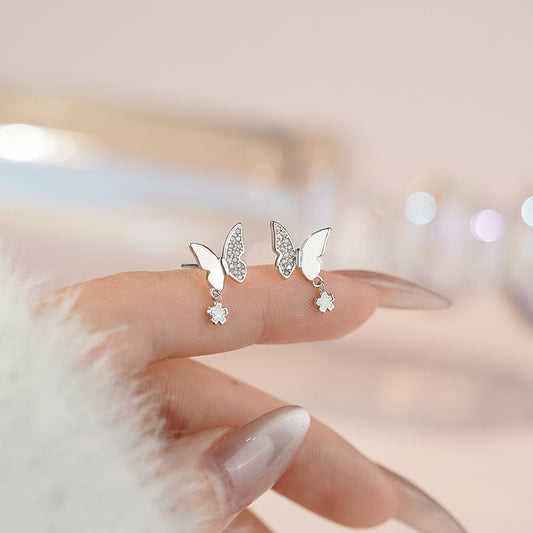 E廠【YC2732E】S999足銀精美蝴蝶鋯石花朵耳環女輕奢高級爆款設計感氣質耳飾 25.05-3