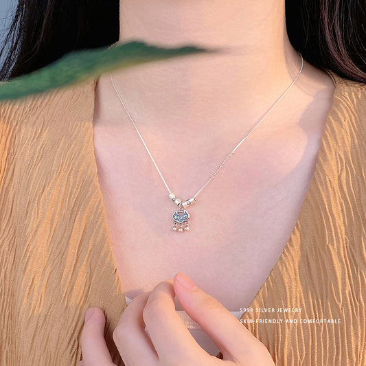 E廠【YC2775N】S999足銀中式平安鎖項鍊女民族風復古做舊國潮鎖骨鍊頸飾 24.05-3