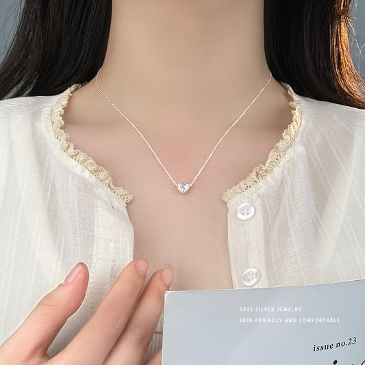 E廠【YC2852N】S925純銀個性彩石愛心項鍊女ins風甜酷風百搭時尚鎖骨鏈 24.02-3