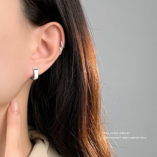 E廠【YC2976E】S925純銀簡約圓環耳環女素圈小眾設計感百搭耳圈耳飾品 24.02-3