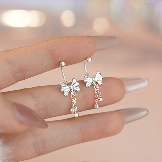E廠【YC2779E】999足銀蝴蝶結U型流蘇螺絲耳環韓小清新甜美氣質新款耳飾 25.04-4