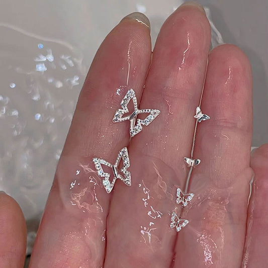 E廠【YC2855E】s925純銀鋯石蝴蝶耳環女簡約時尚2024夏季新款可愛小巧耳飾 24.07-2