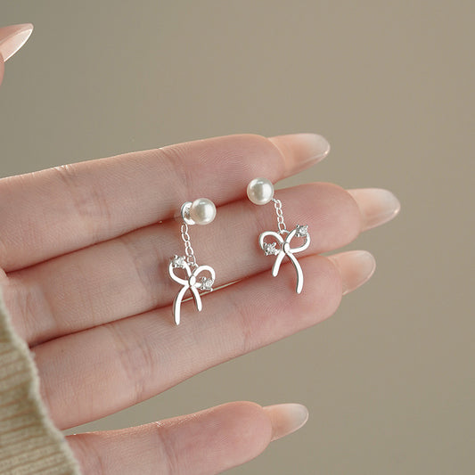 E廠【YC2898E】S925純銀在逃公主蝴蝶結珍珠耳環甜美風小眾優雅溫柔耳飾 25.03-1