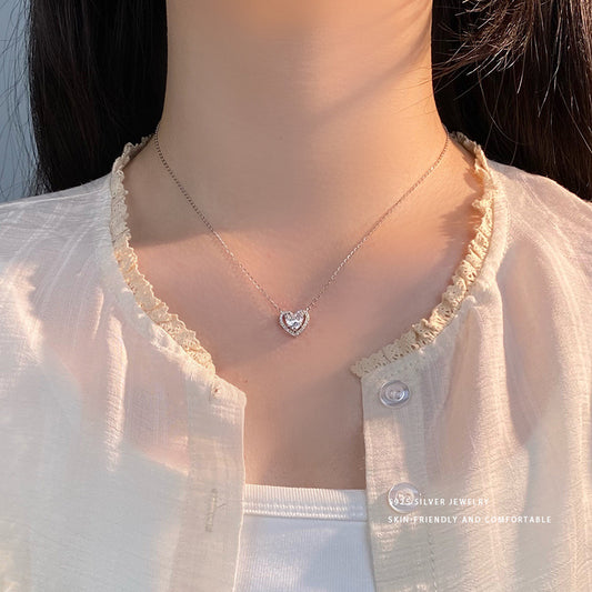 E廠【YC2948N】S925純銀精美雙層愛心項鍊女輕奢高級感甜美夏季百搭鎖骨鏈 24.04-3