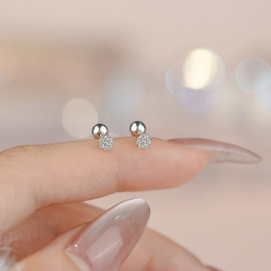 E廠【YC2905E】S999足銀圓鋯石螺絲耳環簡約幾何韓版時尚新款小眾耳飾 25.05-1