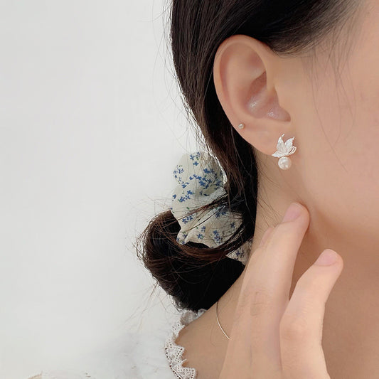 E廠【YC3109E】S925純銀國風新款創意氣質蝴蝶珍珠女耳環高級感幾何耳環 24.06-3