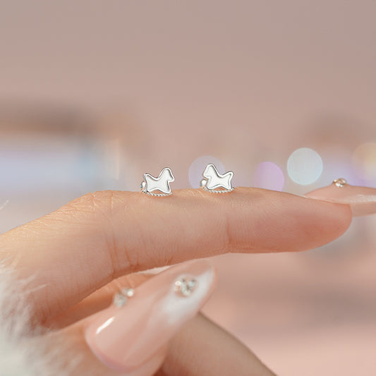 E廠【YC3059E】999足銀木馬螺絲耳環個性簡約可愛童趣清新時尚小眾耳飾 25.04-2