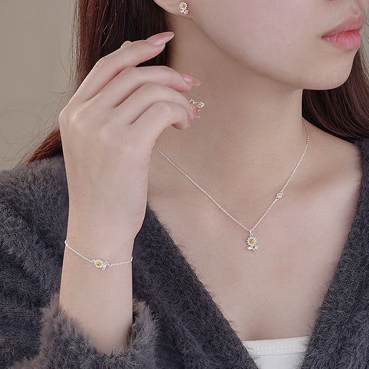 E廠【YC3104N】原創S999足銀葵之韻套裝簡約甜美小眾田園風氣質鎖骨鏈 25.02-2