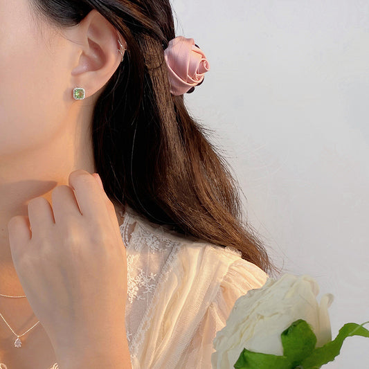 E廠【YC3099E】S925純銀氣質復古方形綠方糖耳環女時尚百搭輕奢韓範耳環 24.06-2