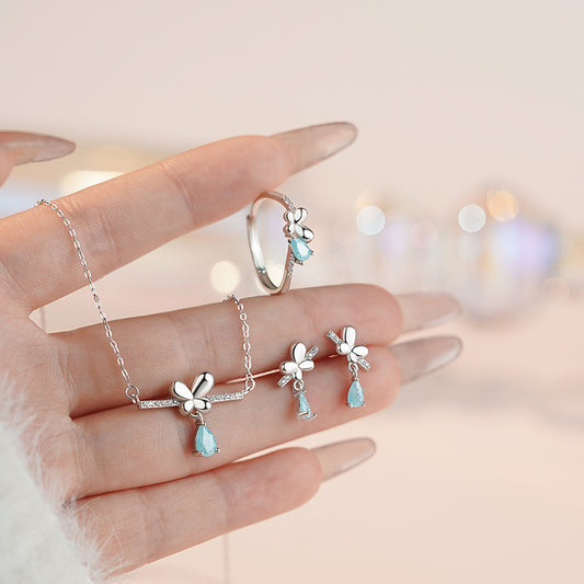 E廠【YC3056N】原創S999足銀蝶夢星橋新款設計甜美三件式輕奢小眾項鍊 25.05-5