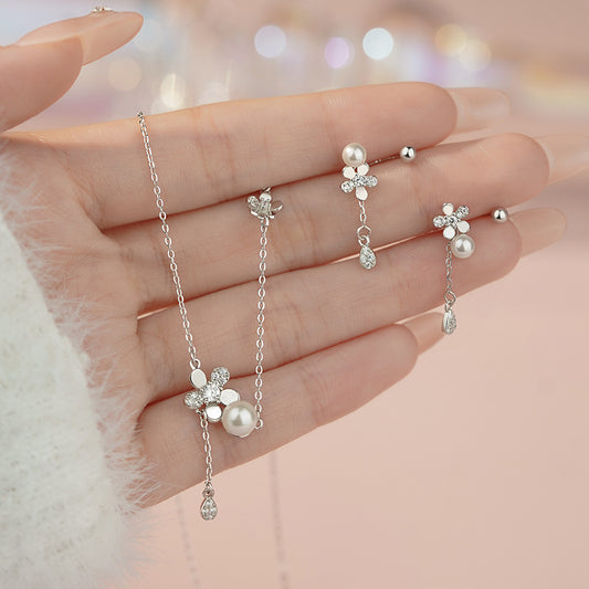 E廠【YC3078N】原創S999足銀花影珠光套裝清新獨特設計流蘇文藝鎖骨鏈 25.04-2