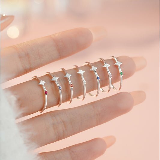 E廠【YC3094R】999足銀四芒星鋯石戒指獨特簡約時尚甜美文藝搭配手飾 25.04-1