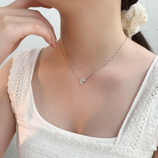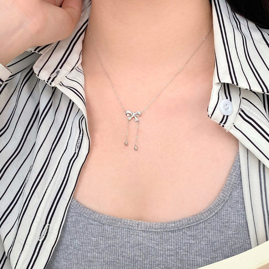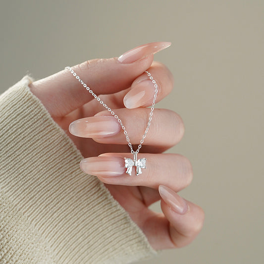 E廠【YC3225N】S999足銀鋯石蝴蝶結項鍊新款輕奢甜美文藝小眾氣質鎖骨鏈 25.03-1