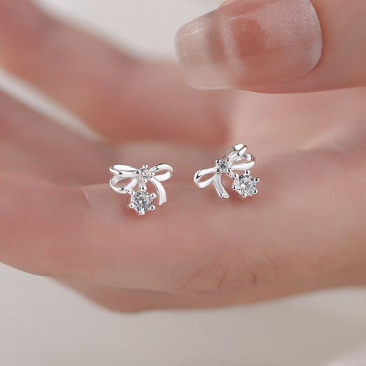 E廠【YC3235E】S999足銀甜美蝴蝶結鋯石耳環女輕奢小眾設計感少女心耳飾 24.11-3