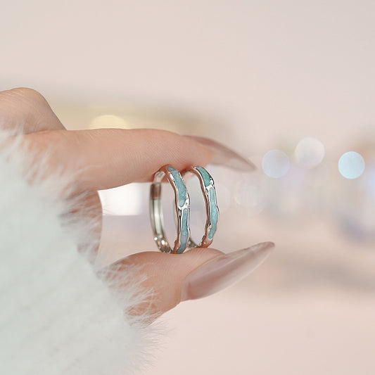 E廠【YC3206R】S925純銀設計小眾滴膠戒指冷淡風時尚情侶對戒開口可調節指環 25.05-4
